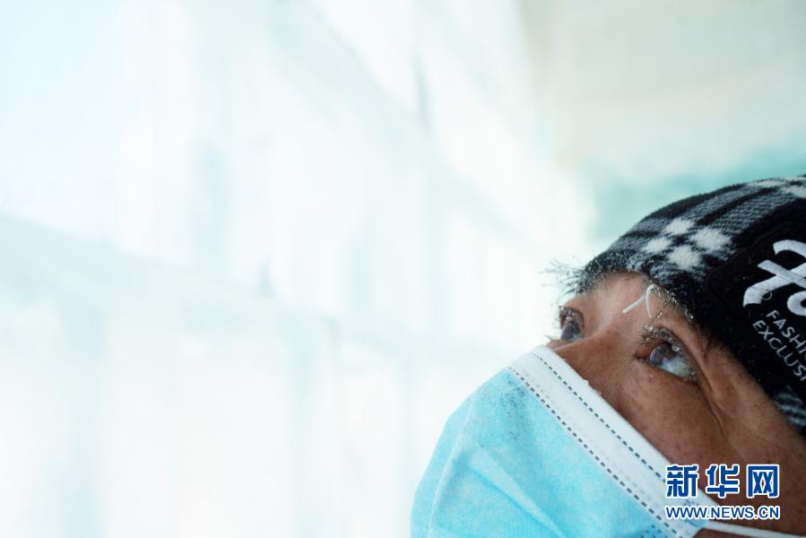 在哈尔滨冰雪大世界园区,在进行冰建内饰项目收尾工作的孙宏岩眼睫毛和眉毛上结了冰花(2020年12月31日)。新华社记者 王建威 摄