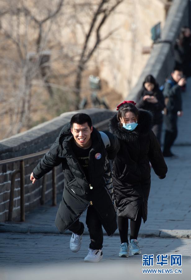 当日,游客在北京八达岭长城游览,迎接新年的到来。