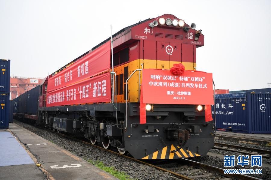 2021年1月1日,中欧班列(成渝)号首列班车在重庆团结村站等待发车。新华社记者 唐奕 摄