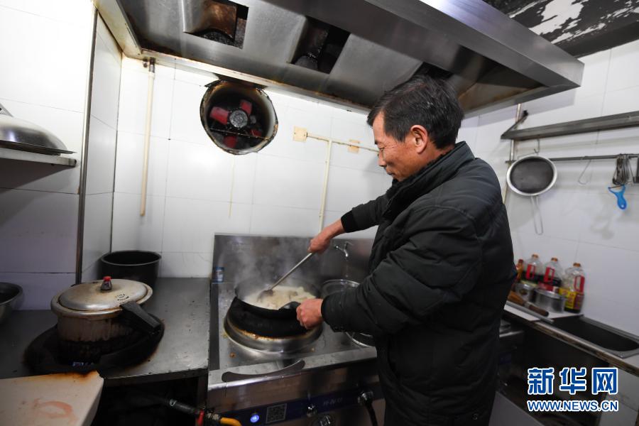 2020年12月21日,石仲芳在湖南省沅江市自家的小鱼馆里烹饪鱼。新华社记者 薛宇舸 摄