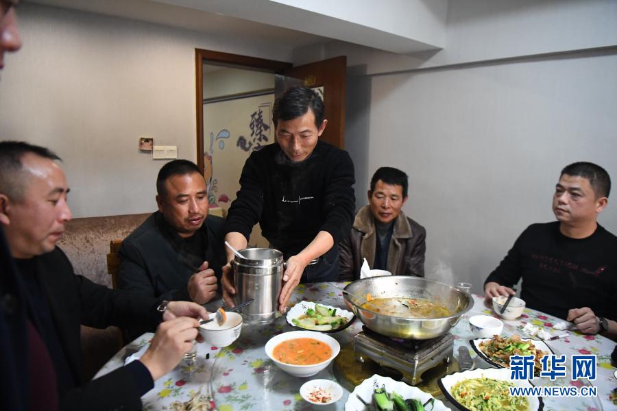 2020年12月21日,石仲芳(中)在湖南省沅江市自家的小鱼馆里为顾客服务。新华社记者 薛宇舸 摄