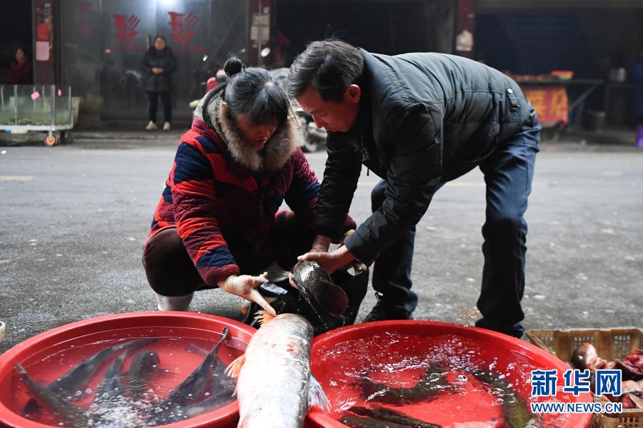 2020年12月21日,石仲芳在湖南省沅江市的一个水产市场挑选鱼。新华社记者 薛宇舸 摄