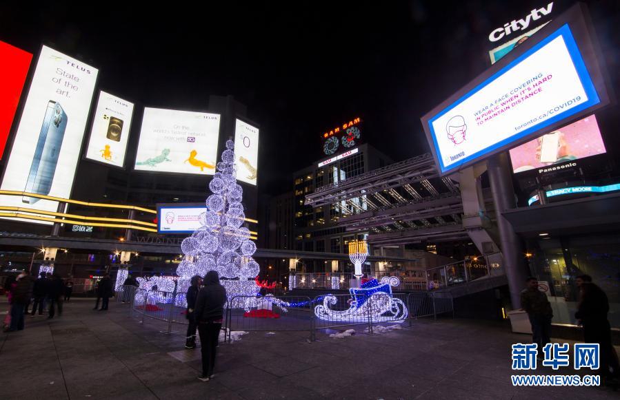 这是2020年12月31日晚在加拿大多伦多拍摄的邓达斯广场。