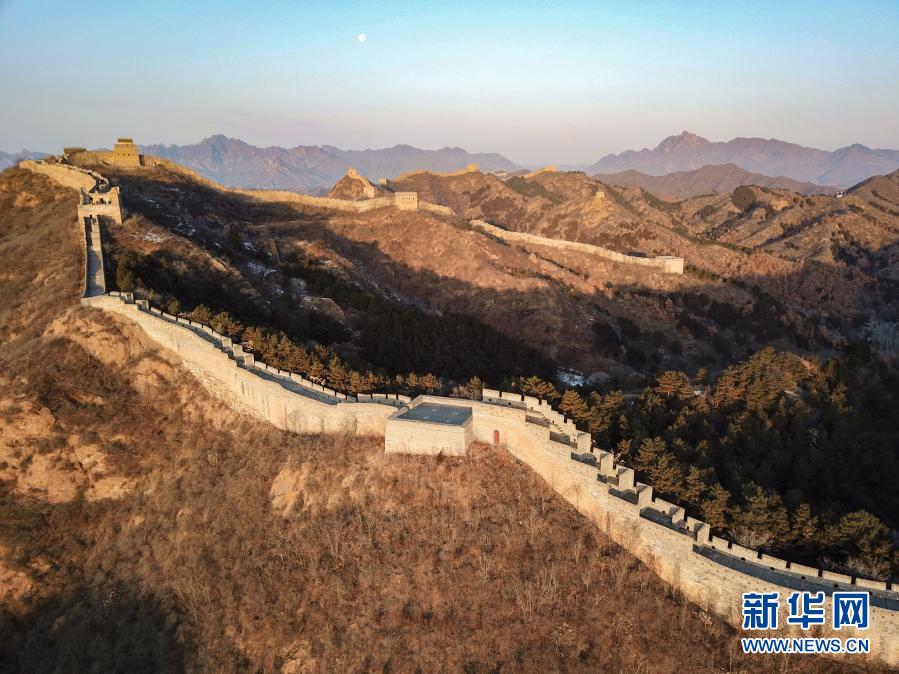 这是2021年1月1日拍摄的晨光中的金山岭长城(无人机照片)。