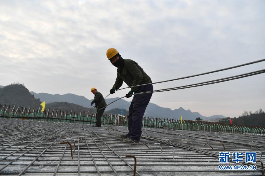 2021年1月1日,工人在湖南省湘西土家族苗族自治州湘西机场高速路建设工地施工。新华社发(龙恩泽 摄)