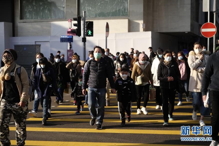 2021年1月1日,在香港尖沙咀,人们佩戴口罩走在街上。