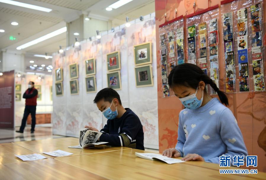 2021年1月1日,小读者在展览现场翻阅连环画。新华社记者 金良快 摄