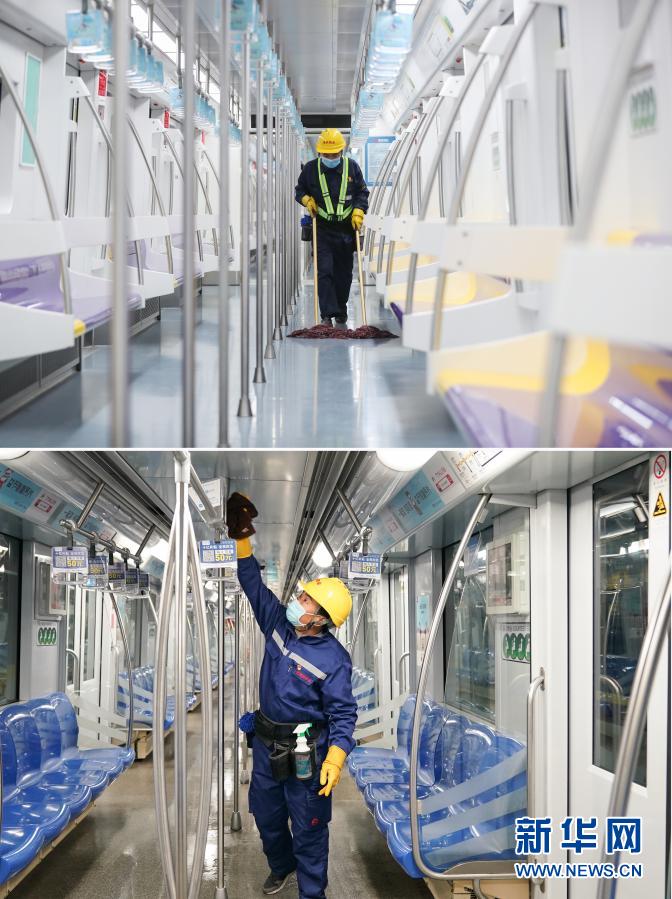 2020年2月,为保障乘客安全出行,上海地铁加大对列车车厢的清洗和消毒频次,同时对列车扶手、座椅等设施进行定时消毒,冯刚峰坚守一线,为乘客营造安全的乘车环境。