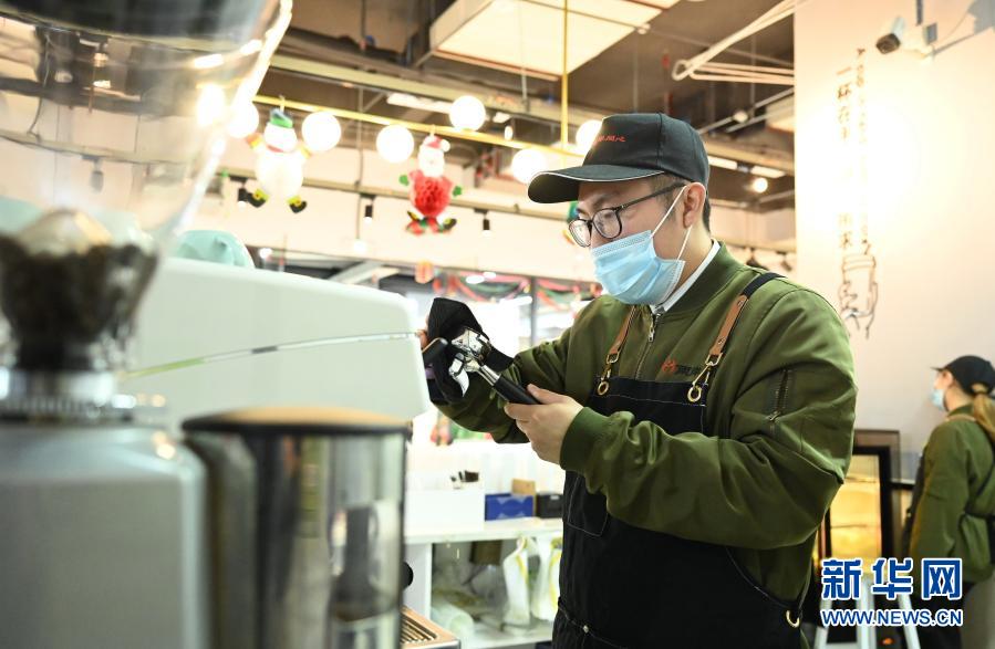 程启涛在福建省南平市武夷新区的台湾青年实训基地制作咖啡(2020年12月30日摄)。新华社记者 林善传 摄