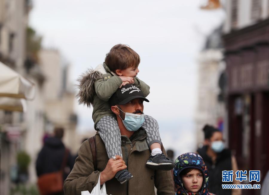 2021年1月1日,一对父子来到法国巴黎蒙马特高地迎接新年第一天。