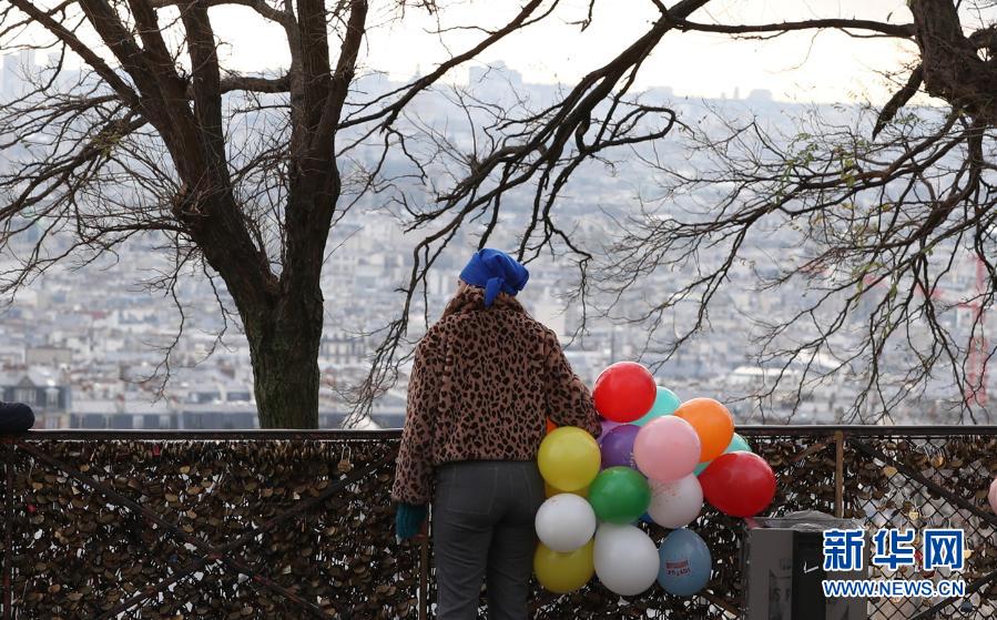 2021年1月1日,一名女子在法国巴黎蒙马特高地登高望远。