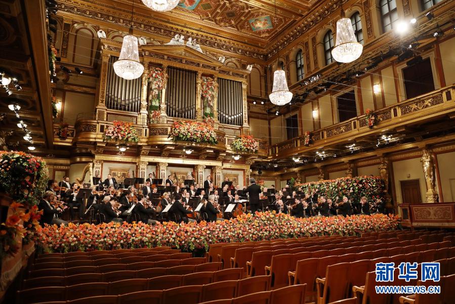 1月1日,维也纳爱乐乐团在奥地利维也纳金色大厅新年音乐会上演奏。新华社发(迪特.纳格摄)