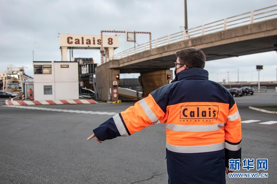 1月1日,工作人员在法国加来港忙碌。1日凌晨,累计有近200辆重型卡车经由法国加来港往来欧洲大陆和英国。