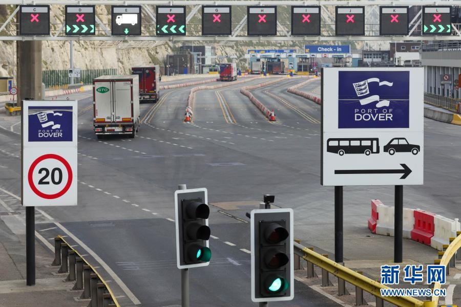 1月1日,货车抵达英国多佛港。多佛港是距离欧洲大陆最近的英国港口。