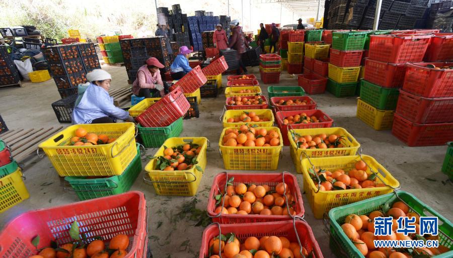 日前,贵州省黔东南苗族侗族自治州榕江县种植的脐橙迎来丰收季,各种植基地忙着组织群众采收、分拣、装运脐橙,以供应节日市场。