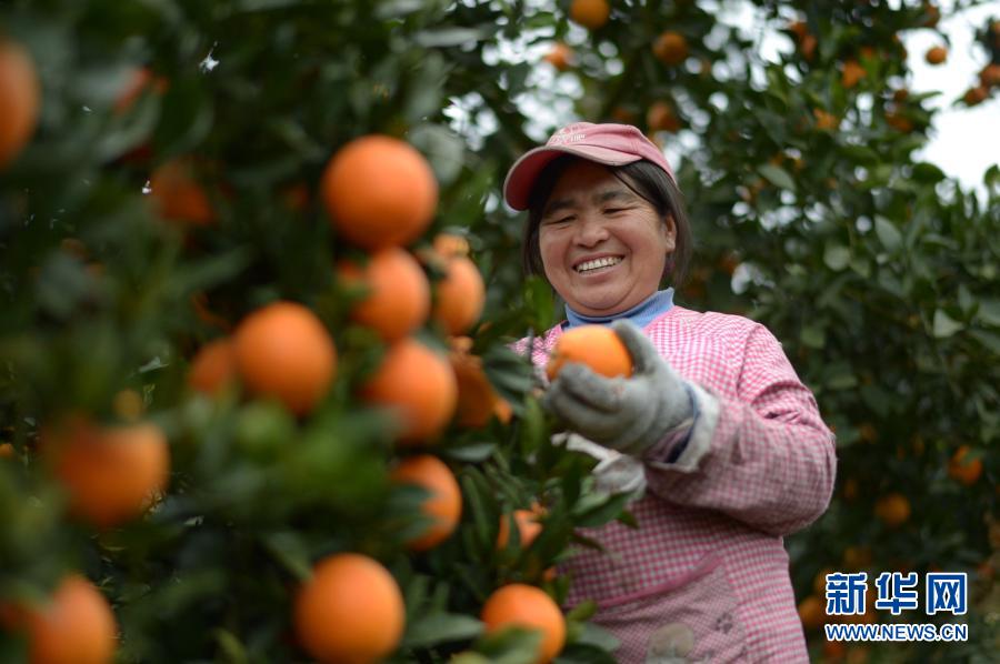 1月2日,在榕江县古州镇西门坡脐橙基地,果农在采摘脐橙。