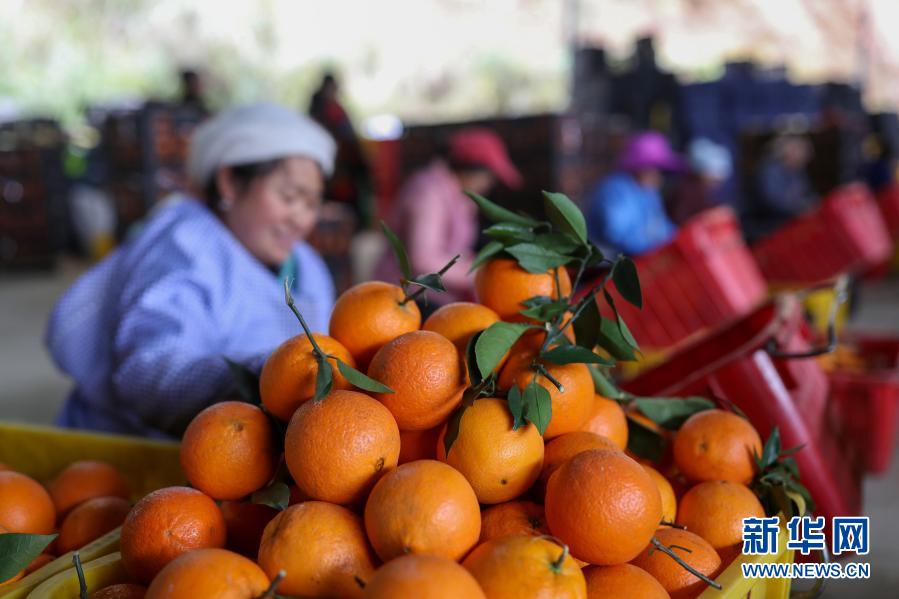 日前,贵州省黔东南苗族侗族自治州榕江县种植的脐橙迎来丰收季,各种植基地忙着组织群众采收、分拣、装运脐橙,以供应节日市场。