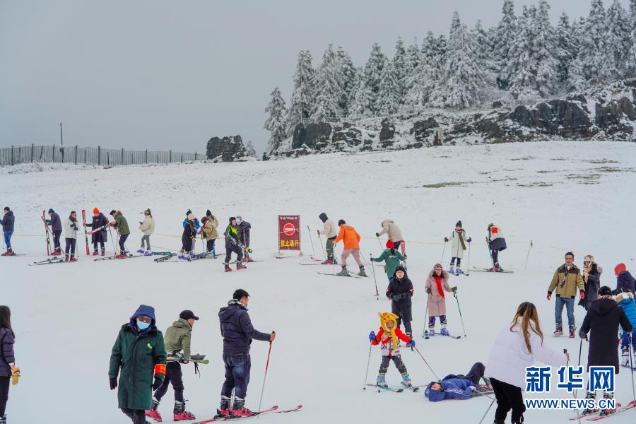 2021年1月2日,仙女山国家森林公园内,游客在滑雪场体验雪上运动。新华社记者 刘潺 摄