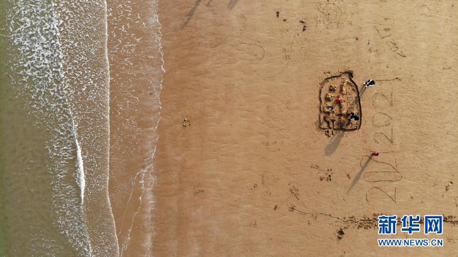 2021年1月2日,游客在山东省日照市万平口景区游玩(无人机照片)。