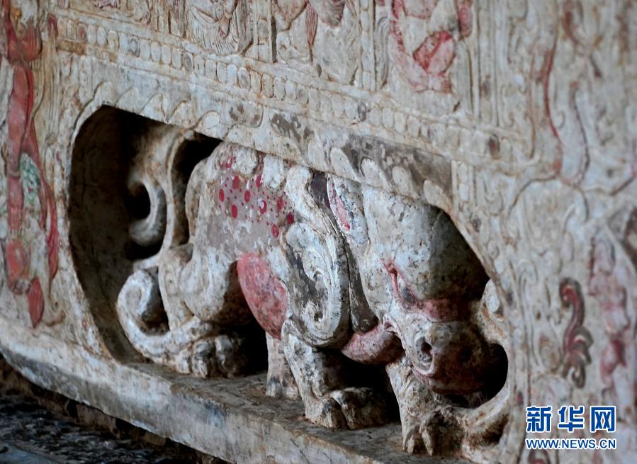 这是石棺床上壸门及壸门内的瑞兽(2020年12月24日摄)。新华社记者 李安 摄