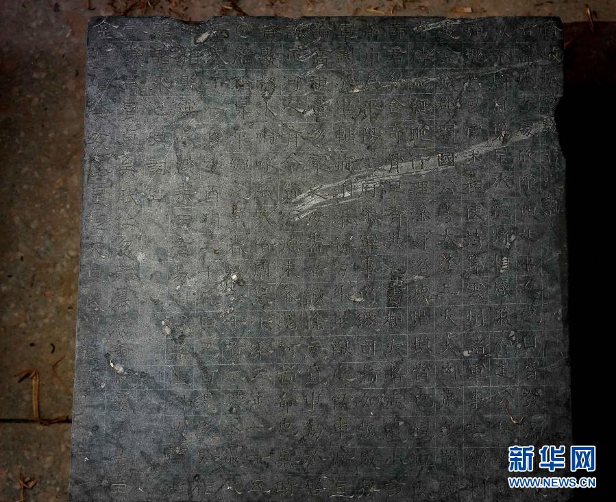 这是隋代汉白玉石棺床墓内出土的墓志(2020年12月24日摄)。新华社记者 李安 摄