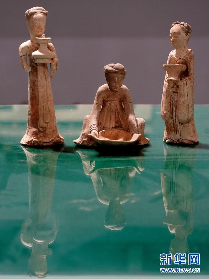 这是隋代汉白玉石棺床墓内出土的瓷俑(2020年12月24日摄)。新华社记者 李安 摄
