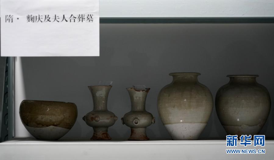 这是隋代汉白玉石棺床墓内出土的部分瓷器(2020年12月24日摄)。新华社记者 李安 摄