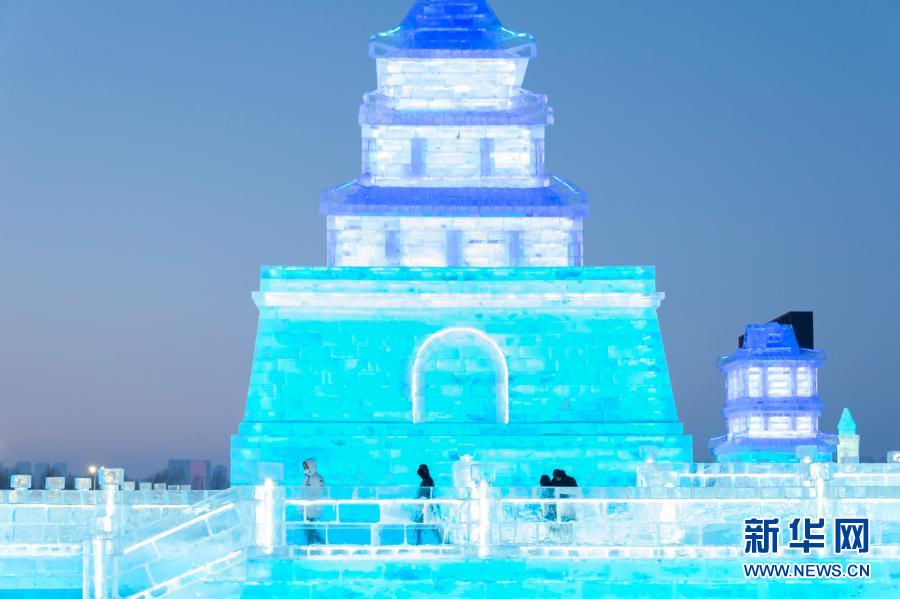 2021年1月1日,游客在哈尔滨冰雪大世界园区游玩。