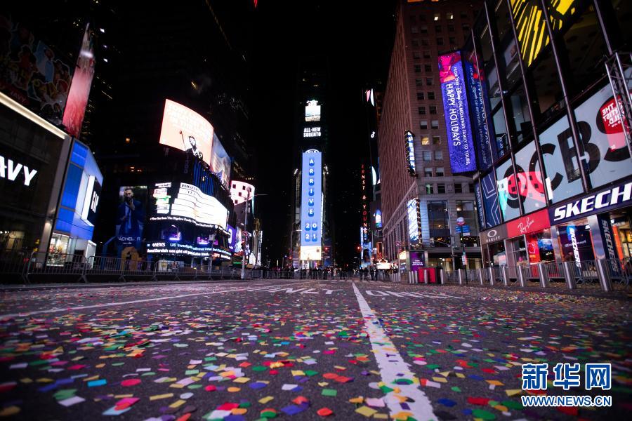 受新冠疫情影响,2021年纽约时报广场跨年庆祝活动不对普通观众开放,只通过电视和线上转播,以避免人群聚集。
