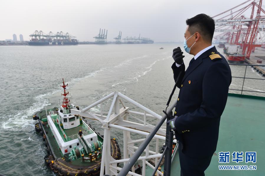 2020年12月28日,天津港引航中心引航员李占涛指挥拖轮辅助一艘大型船舶离港。