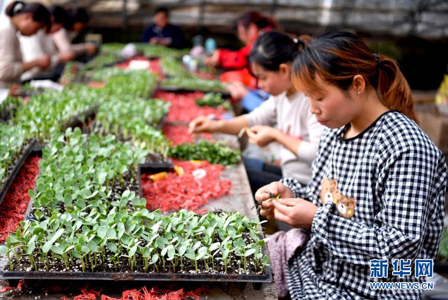 1月4日,安徽省亳州市谯城区张店乡年丰蔬菜种植农民专业合作社的工人在育苗大棚内忙碌。