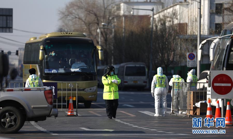 1月4日,在沈阳市皇姑区塔湾街昆山西路管控区域出入口,防疫工作人员在执勤。