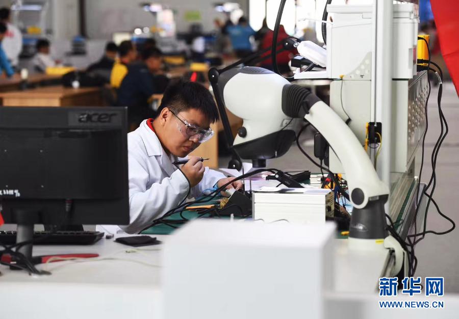 梁攀在第45届世界技能大赛电子技术项目比赛中(2019年8月26日摄)。