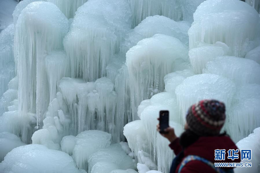 近日,济南九如山度假风景区依托原有的八潭九瀑旅游资源,通过引流形成多处造型各异的冰瀑群,吸引不少游客前来欣赏。