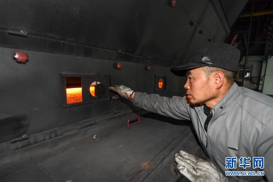 1月6日,在长春市热力(集团)有限责任公司东岭事业部,工作人员在查看锅炉运行情况。新华社记者 张楠 摄