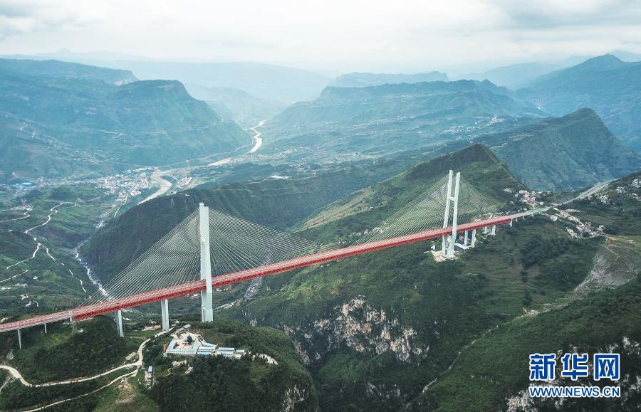 这是2018年8月23日拍摄的位于贵州、云南交界处的杭瑞高速北盘江大桥(无人机照片)。新华社记者 陶亮 摄