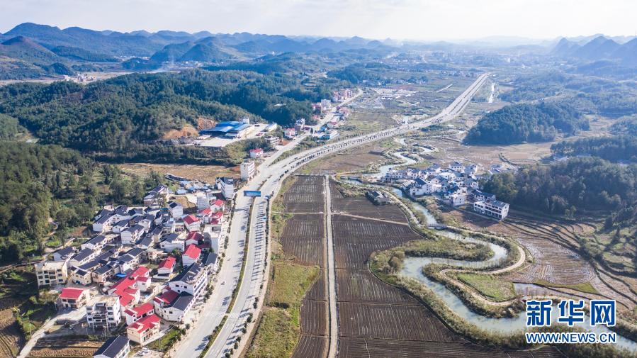 这是2020年10月21日拍摄的黔南布依族苗族自治州长顺县广顺镇的农村公路(无人机照片)。新华社记者 陶亮 摄