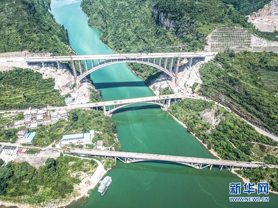 这是2018年7月12日拍摄的织普高速夜郎湖特大桥路段(上,无人机照片)。新华社记者 陶亮 摄