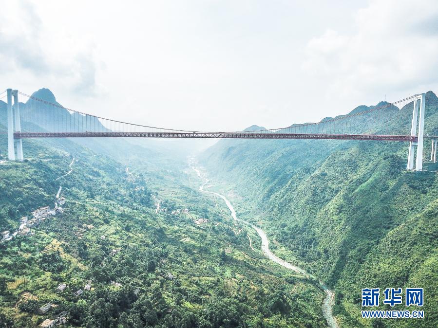 这是2018年8月22日拍摄的沪昆高速坝陵河特大桥(无人机照片)。新华社记者 陶亮 摄
