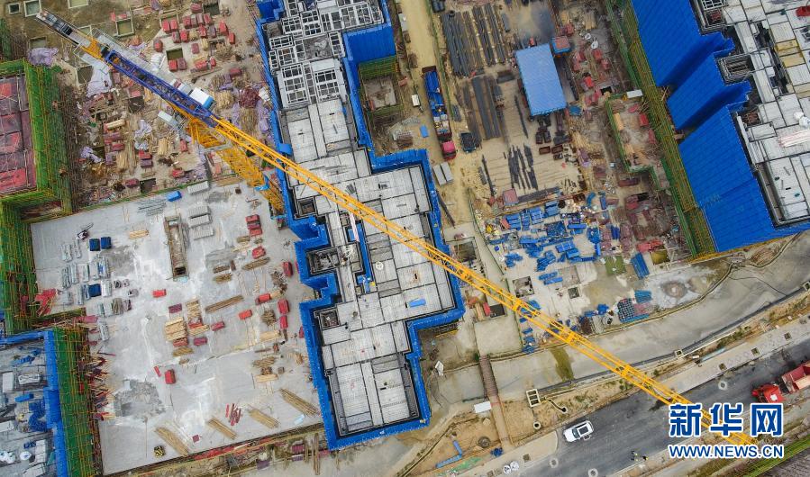 工人在崖州湾科技城深海科技城综合服务中心项目施工,该项目由中建四局承建,2020年9月开工,目前已进入主体施工阶段(1月5日摄,无人机照片)。新华社记者 杨冠宇 摄