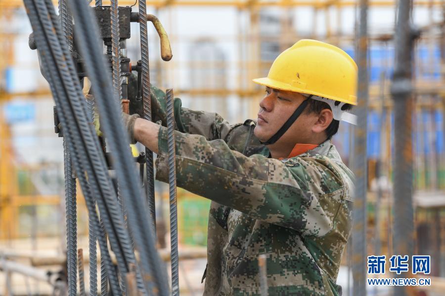 1月5日,工人在海南三亚深海科技城综合服务中心项目工地上施工。新华社记者 周佳谊 摄