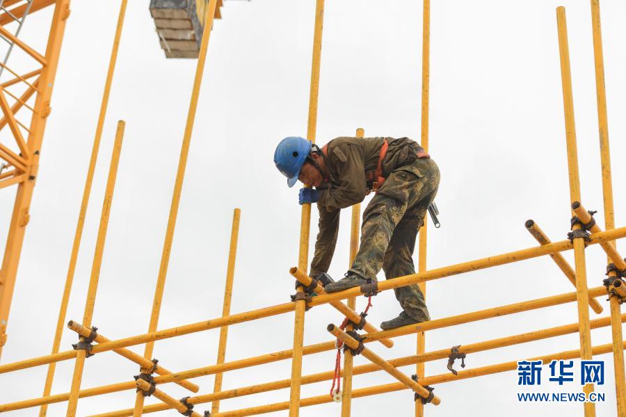 1月5日,工人在海南三亚深海科技城综合服务中心项目工地上施工。新华社记者 周佳谊 摄