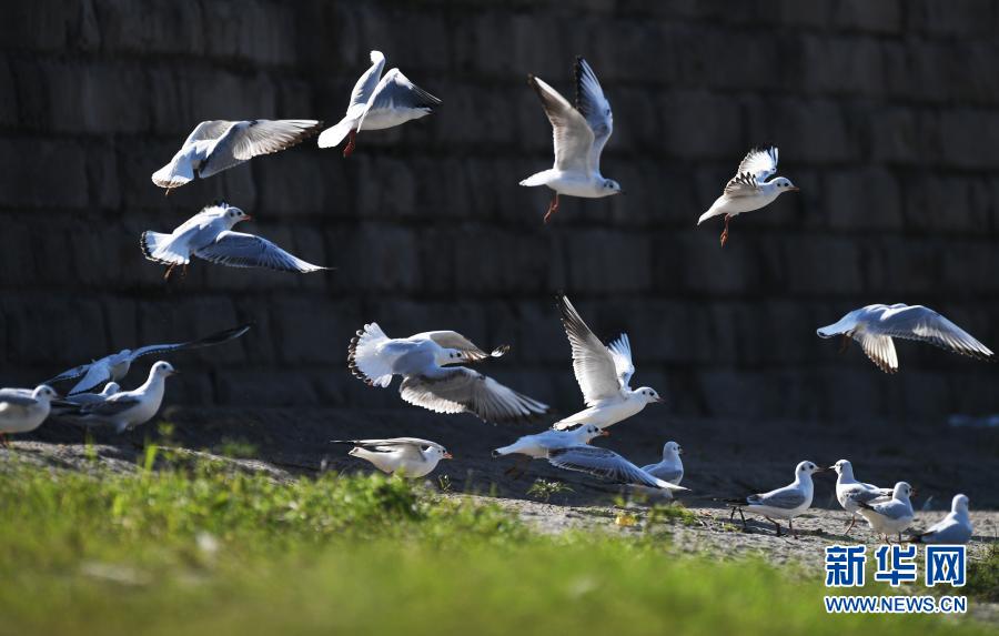 这是2020年11月11日在重庆市江津区几江长江大桥一带拍摄的红嘴鸥。新华社记者 王全超 摄