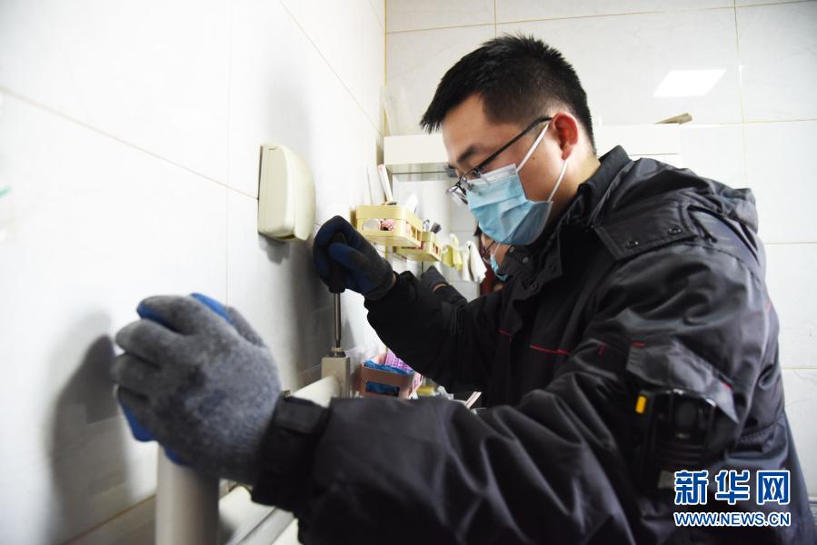 1月6日,济南能源集团所属济南热电腊山分公司工作人员在一处居民小区入户检查供热设备运行状况。