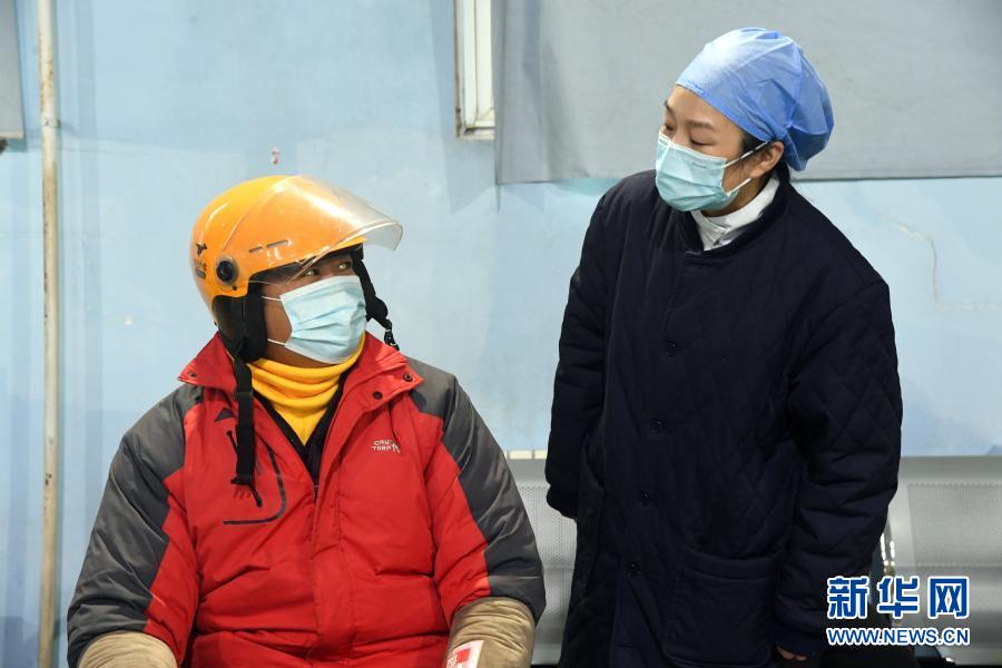 1月6日,在北京市海淀区中关村街道临时集中接种点,医务人员在留观区询问接种人员接种后的情况。新华社记者 任超 摄
