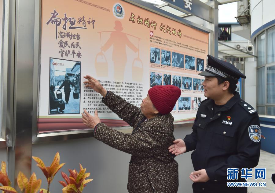 1月6日,在南宁市公安局青秀分局中山派出所,退休民警颜宇群(左)讲述自己当年从警时为群众挑水的故事。