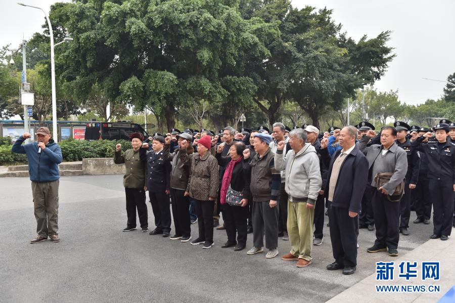 2021年1月10日是首个“中国人民警察节”,广西南宁市公安局青秀分局中山派出所民警与十余位退休民警一起重温入警誓词,迎接这一节日的到来。