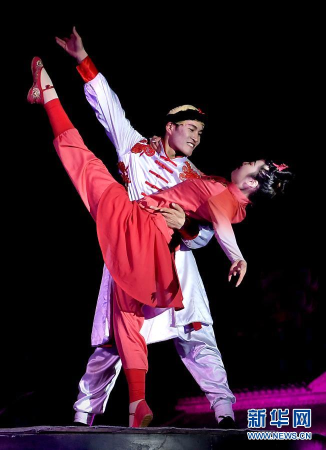 周鑫在电影小镇里为观众表演(1月5日摄)。新华社记者 李安 摄