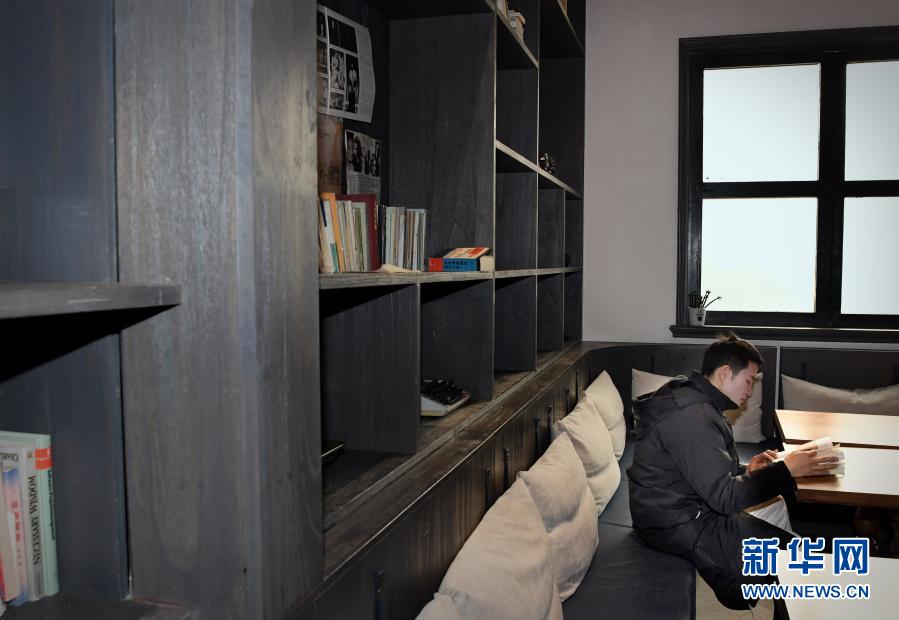 周鑫在电影小镇的德化街书吧里看书(1月5日摄)。新华社记者 李安 摄