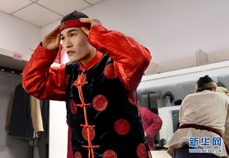 周鑫在电影小镇的服装间里换表演服(1月5日摄)。新华社记者 李安 摄